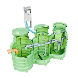 Odpowiednio użebrowane, pionowe zbiorniki pozwalają na maksymalne wykorzystanie miejsca oraz optymalne warunki do wzrostu bakterii niezbędnych w procesie oczyszczania. Prosta konstrukcja bez elektrozaworów i sterowników pozwala uniknąć drogiego serwisu, wystarczy sprawdzić ustawienia zaworów raz lub dwa razy do roku. Oczyszczalnia domyślnie składa się z trzech komór. Osadnik wstępny to miejsce do którego dopływają ścieki surowe z gospodarstwa domowego. To tutaj dochodzi do uśrednienia ładunku zanieczyszczeń oraz oczyszczania mechanicznego. Cięższe od wody osady opadają na dno i ulegają częściowej mineralizacji, tłuszcze zbierają się w górnej części tworząc kożuch, a ścieki pomiędzy przepływają do drugiego zbiornika. W reaktorze biologicznym dochodzi do właściwego oczyszczania ścieków. Dzięki intensywnemu napowietrzeniu dochodzi do rozwoju mikroflory bakteryjnej, która rozkłada zanieczyszczenia zawarte w ściekach.